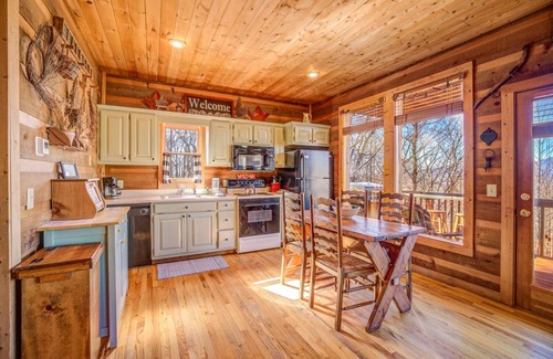 A Glimpse of Heaven has a gas grill for those dinners you have been planning. All you need to bring with you is food and beverage. This cabin includes a fully-equipped kitchen, cookware, utensils, dinnerware and flatware. Yes, there is a coffee maker, too! There is an outdoor firepit, just don't forget the firewood. There is also an 8 foot slate top pool table and a large flat screen plasma TV in the game room.