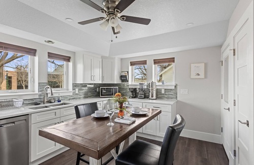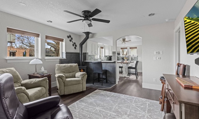 Outside, enjoy a large, maintenance-free yard with a south-facing area and privacy fencing-ideal for peaceful morning coffee or sunset happy hours. The vibrant neighborhood offers a small-town feel with everything within walking distance: a recreation center, breakfast spots, post office, grocery stores, and a farmers market right at your doorstep. This cottage is a perfect blend of sustainable design and cozy living, inviting you to reconnect with comfort and community. See it here https://youtu.be/JoulGQoCgbA and then book it to experience health, clarity and peace.