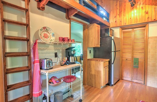 Or you may choose to stay at the cabin to just sit back and relax on the porch or under the shade of the trees, enjoying the beautifully landscaped yard and the sound of the birds overhead.