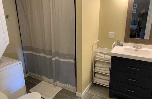This cabin is 1/2 of a spacious duplex that sleeps 4 comfortably with a queen bed and full bath on the first level and 2 twin beds with a 1/2 bath upstairs. There is plenty of room to add an air mattress if needed.