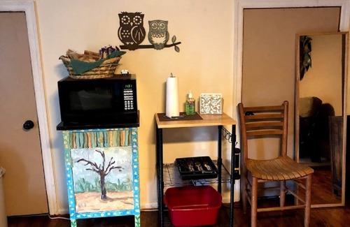 This delightful accommodation features a queen bed and a twin bed, comfortably sleeping up to three guests. With off-road parking and a well-lit private entrance, you and your guests will feel right at home. Enjoy complimentary breakfast items such as water, juice, oatmeal, and coffee, along with essential amenities like a microwave, mini fridge, coffee maker, ice bucket, plates, and silverware. The property's proximity to popular venues suited for barn weddings and events allows couples to have seamless access to everything they need for their big day. Additionally, the well-lit stairs leading to the suite ensure safe accessibility, making it perfect for guests of all ages.