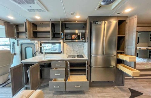 Sleep comfortably in this gorgeous motorhome, which offers all a hotel could offer and more.