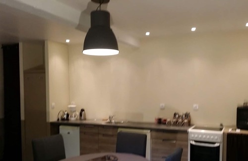 Cottage Rental 60 m² 2 rooms for family of 5, living room with kitchen with oven, 4 hobs, fridge, dishwasher and microwave. TV in master bedroom and in the living room.