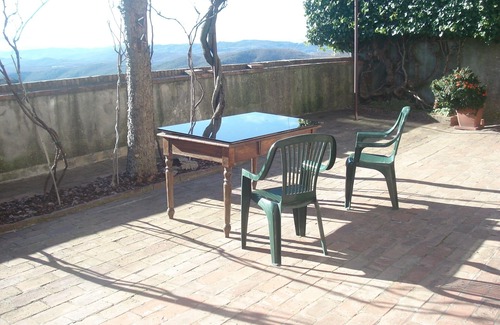 This 17th century house, at the end of the main village road, overlooks a beautiful countryside and the Mediterranean, with a splendid view of the Elba and other islands of the Tuscan archipelago enjoyed from the terrace, balcony and all the windows. The house is set on three floors, with small and intimate rooms. Central heating, BBQ on terrace. The English speaking owners normally stay in an adjacent house.