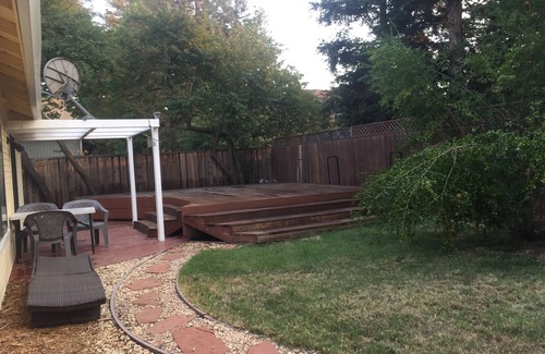 Looking for convenient, comfortable, clean place to stay? You found it. The whole group will enjoy easy access to everything from this centrally located house. Clean, spacious rooms, full kitchen (with full size refrigerator, stove, oven, microwave, toaster, coffee machine, pots, pans, plates, cups, utensils), washer and dryer, 65" smart TV, linens, towels, cleaning supplies, everything you need in a house, a nice backyard with mature trees and so much more. 100 yards to greenbelt and parks where you can enjoy a nice walk, run, or ride your bike. Less than a mile to shopping; just a mile to downtown Davis with many restaurants, coffee shops, cafes and bars.