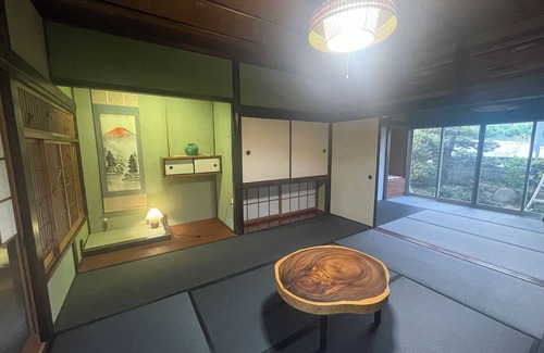 From the windows, you can see the Japanese garden and a nostalgic rural landscape, with gentle mountains in the distance.