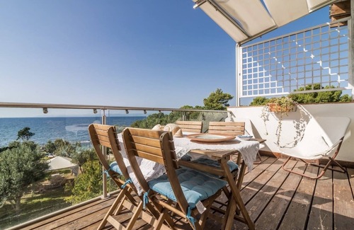 Located inside the top floor of a house with garden with exit directly to the sea, independent entrance on an external staircase, sea view terrace with barbecue and table, fully equipped kitchen with appliances, large bathroom, laundry room with washing machine, temperature controlled, very bright, one double bedroom with sloping ceilings with the possibility of a cot, and a bedroom for 2 people. Beach towels and umbrella available, unlimited Internet connection
