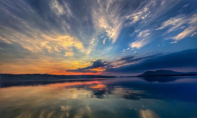 - A lake, a mountain and the house with the red door