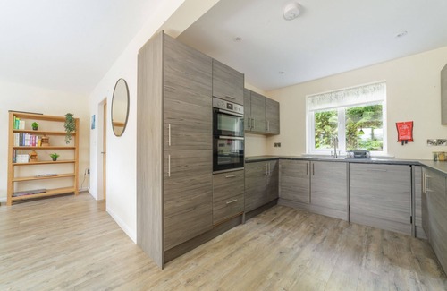 Kitchen & Dining Area: Well-equipped modern kitchen, containing induction hob, oven, fridge, freezer, wine fridge and microwave. BBQ supplied for use outdoors.