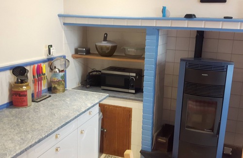 At the back of the hall is a large kitchen with gas cooker, microwave, electric multi-cooker, toaster, cafetiere and electric kettle. In an annex to the kitchen is a double sink and dish washer.