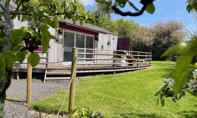 The Purple CargoPod is situated on it's own in a small orchard, with plenty of space to relax. You can pick fruit from the trees and hedges in September!