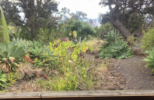 Our 3 acre property boasts beautiful trails for you to wander around and explore. We have an Orchid garden that has over a 100 different Orchid varieties, an orchid tree, palm trees, Bougainvillea, Ohia trees, and Hibiscus that all filled with glorious blooms at different times of the year. We also have fruit trees including Mango , Guavas, citrus varieties, a pineapple garden, Bananas, passion fruit and dragon fruit. We have coffee trees, Mamaki tea and the list goes on of amazing plant life to experience.