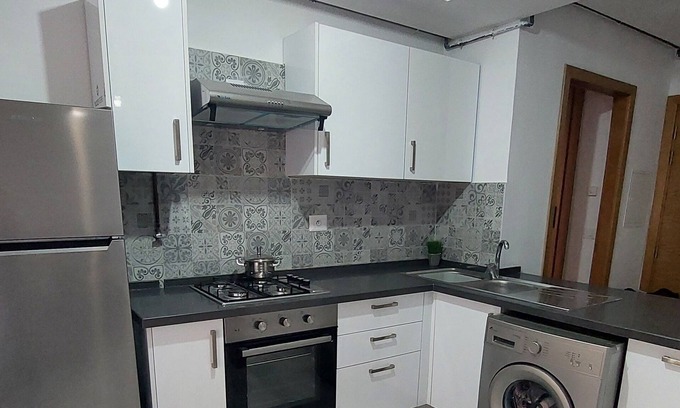 Nestled in Tunis, this 2-bedroom, 1-bathroom apartment brings it all within your reach. Fans of nature and the outdoors will love being 17 minutes by car from La Marsa Beach and 15 minutes from La Goulette Beach. You'll easily make the quick 4-minute drive to Golf de Carthage or the 4-minute drive to Soukra Park.