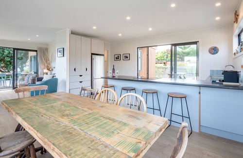 As you step inside, you'll be greeted by a friendly layout designed to bring families and friends together. Your stay comes replete with modern comforts such as Wifi, TV Freeview, and washing machine. More so, Beach Break Pohara boasts an outdoor kitchen, ready for those afternoon BBQs as you watch the sunset over the ocean.