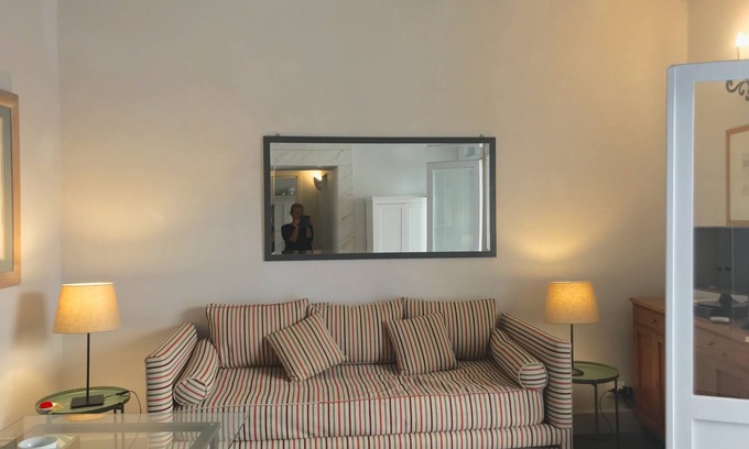 Beautiful apartment just renovated 1 bedroom, bathroom, living room and kitchen The apartment is located in one of the most exclusive streets of the historic center of Rome, Via Giulia, has just been restored by me and my husband, is on the ground floor of a magnificent palace of the 1600s. It is structured as follows: a double bedroom which leads to a complete bathroom with a grance shower and a window that leads into an inner courtyard, then there is a nice large living room with a dining corner and a sofa that can be transformed into two single beds.Among the two rooms there is a small kitchen, equipped with everything, you will also find the basic spice oil, vinegar, coffee etc. The linen is supplied as soap and toilet paper. The apartment is ideal for two people but suitable for a family of 4 people willing to share a bathroom only. In the house there is air conditioning in every room, even if the house is cool in summer and warm in winter. Electric radiators are also in the bathroom and bedroom. Throughout the apartment you have a good free WIFI connection and a satellite television with all channels. You can go on foot to go shopping at the Campo dei Fiori market, or to hear the Pope appearing on the balcony at San Pietro, all in 10 minutes on foot. The Pantheon, Piazza Navona and the Trevi Fountain are equally close. At the same time you will enjoy an unusual calm and silence for a street in the historic center of Rome.