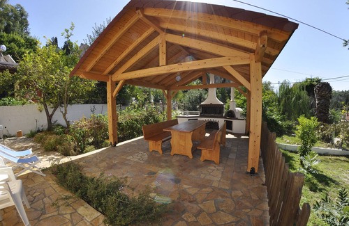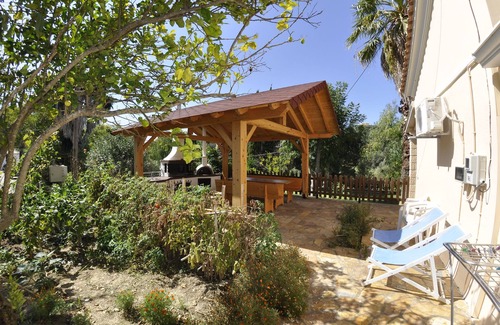 Magdalini House is located about 400m from the bay . It includes 2 bedrooms, one of which is equipped with a double bed and the other one with two single beds. In the living / dining there is a sofa bed for a 5th person. It features two shower rooms, so no one has to wait until he can take a shower. The private, well maintained garden offers plenty of space and shadow from the tall trees. A special attraction is the old millstone, a disused old olive press and the large eucalyptus & palm trees in front of the garden. Also there is a private barbecue area and a wood oven at the back side of the house.