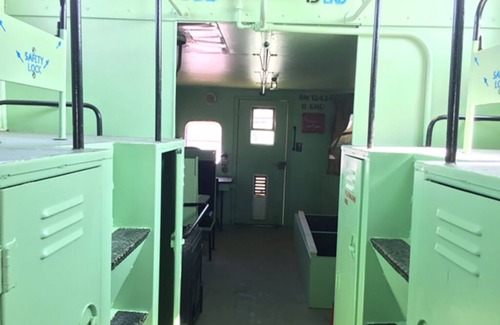 Railroading comes alive at night. Relax in the reversible chairs up in the cupula and watch the sun set. Relax in outdoor chairs on the platform deck. Your caboose is also equipped with a table and chairs, an office desk and chair at each end of the car, and two single cots. A full breakfast is served in the morning.