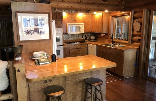 The log home is amazing with 2400 square feet of open ceiling living space. Three bedrooms in the main home and a separate, but attached bedroom with ensuite bathroom in what we call the annex.