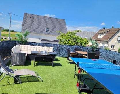 12 miles from Colmar Train Station in Algolsheim, A O G prestige Relax Max SPA SAUNA offers accommodations with access to a sauna, hot tub, and spa facilities. This property offers access to a terrace, free private parking, and free Wifi. The accommodation features full-day security and bicycle parking for guests. The apartment consists of 2 bedrooms, a living room, a fully equipped kitchen with a dishwasher and a coffee machine, and 2 bathrooms with a walk-in shower and bathrobes. A flat-screen TV is featured. The apartment offers bed linen, towels, and laundry service. House of the Heads is 12 miles from the apartment, while Saint Martin Collegiate Church is 12 miles away. EuroAirport Mulhouse Airport is 39 miles from the property.