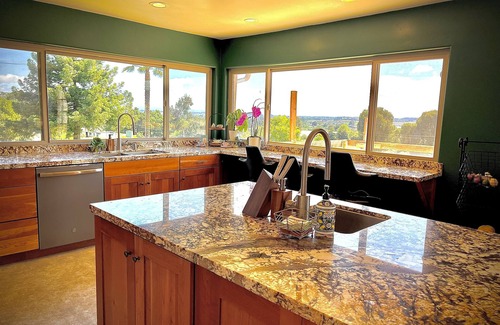 Nestling up on the hill overlook an expansive view of the Pajaro Valley area with trees, agricultural lands and big sky. This is the upper unit of the main house of Peace, Love and Sunset ranch campground. The view from every room is what makes this place special. Watch the sunset from the kitchen, living room or the deck. This is a perfect country getaway to find your inner peace, recharge and rejuvenate. There are three fire pits in the campground and horses live in the property.