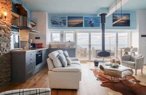 Relax and recline on one of the stylish sofas and take in the views of Barmouth bay from the bay windows. capture the sunset in the sunroom, with access to the rear patio for some Vitamin D.