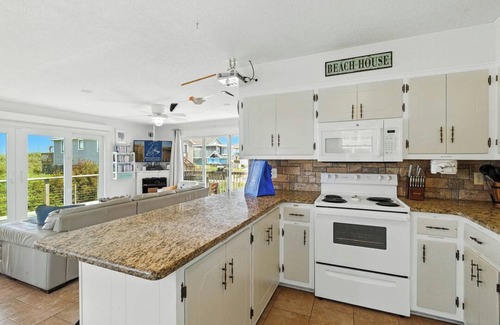 Eating in? Pull up to the 3-seater bar, or at the dining room table with built-in bench seating - the kitchen is compact, but well appointed, with everything in easy reach. On those nights when you just want to stay in, lower the projection screen to show your favorite films in the living room turned private theater! All of the four bedrooms are on the same level, so you'll be close to everyone you love. The king master bedroom is perfect for Mom and Dad, the two queen bedrooms will give teens the room they need, and with a bedroom for the kiddos furnished with a bunk bed and twin, the whole family will love their rooms at A Pearl in the Oyster.