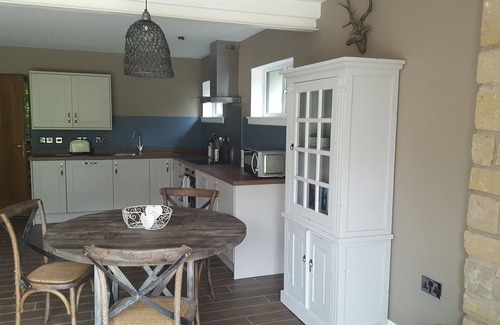 The modern cottage provides all commodities : fully equipped kitchen, coffee machine, microwave, toaster, kettle, dishwasher, cooker/oven.