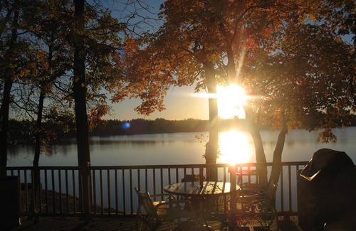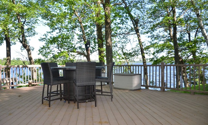 Be one with nature on our spacious deck overlooking the gorgeous lake. Enjoy great pan fishing and swimming from our dock. Boat rental is available at Sand Lake Resort or haul your pontoon or fishing boat and tie up at our dock. We have 150 feet of shoreline and children of all ages will enjoy wading out into the shallow lake water and skipping rocks. Take a nature walk to the neighborhood park complete with a play structure, ball field, pickleball and tennis courts. Eagles and loons call our lake their home, and their sounds can be heard daily. Every bedroom has a view of the lake. Wake up early and enjoy the sunrise over the lake. Rainy days will be enjoyable with our large selection of board games or stream movies on the Smart TVs in every bedroom. Nights can be spent around a campfire roasting marshmallows and observing the starry sky. Your perfect vacation awaits!
