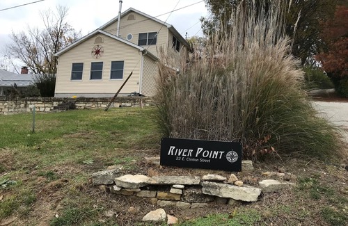 This spacious 2400+ sq/ft home overlooks downtown Grafton and the confluence of the Mississippi and Illinois rivers. It accommodates larger groups by offering two master bedrooms (with private bathrooms), a bedroom with a bathroom across the hall, and a queen size sofa sleeper. A large front room and upstairs sitting area provide spectacular views of the rivers. Outside there is a deck and covered seating area for enjoying the same scenic view. Close to area attractions The Loading Dock, Grafton Winery, Aries Winery, Raging Rivers, Brussels Ferry, bike paths and Pierre Marquette State Park.
