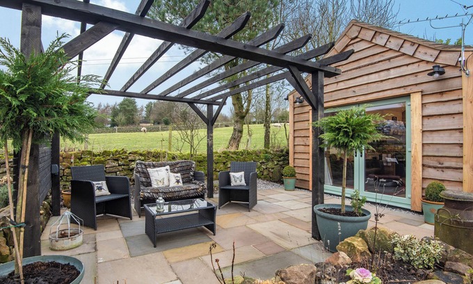 Shower Room: Walk-In Shower, Toilet. Electric central heating, electricity, bed linen, towels and Wi-Fi included. Welcome pack. Front garden with garden furniture and electric outdoor cooking grill. Private parking for 2 cars. Electric car charging point (at cost, payable directly to owner). No smoking.. A picture-perfect property to spend your well-deserved break. As you drive up to Little Pines Lodge the first thing you will notice is how pretty it is. A dry-stone wall surrounds the front of the property with the exterior of the property cladded and the location making the most of the fabulous nearby rolling hills. Enter this thoughtfully converted space and you will discover vaulted ceilings, quirky bespoke furniture, and kitchen along with quality soft furnishing and a real eye for interior design flowing throughout the property. Enjoy the open plan feel of the lodge which boasts a cosy double bedroom perfect to relax after a busy day. A well-designed walk-in wet room really adds style to this property. The separate living/kitchen/dining area has patio doors leading to the private outdoor space where there is an electric outdoor cooking grill. Venture outdoors and you will be greeted by a landscaped seating area with comfy sofa and chairs a great place to grab a bottle from the fridge and make the most of the sweeping rural views and lose yourself in nature.