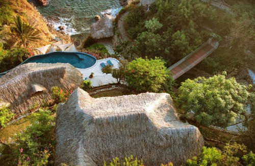 Located on the top of a small mountain in Playa Mazunte, ZOA combines the seduction of Oaxaca´s bohemian coast with the inspiration of contemporary Mexican architecture. In a relaxed but elegant atmosphere, ZOA spaces offer absolute tranquility and privacy with spectacular views of the Pacific Ocean.