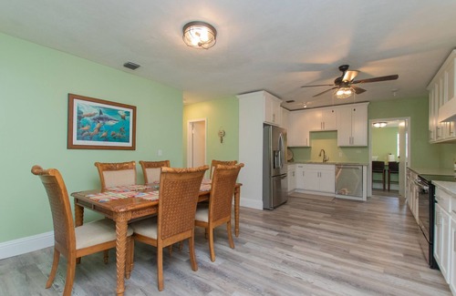 Entire house has been remodeled, fully furnished, with a 90 ft Dock. Bring your clothes, boat, fishing and dive gear. Located in desirable "Islamorada" where you will have easy access to some of the best back-country fishing, and or ocean fishing which would include all of the paddle boarding, snorkeling, and diving that anyone would ever want, just minutes from Channel 5 and channel 2. Dog beach is 3 min away by boat. You will love the back porch outdoor living space which includes your own Bar over looking the water. This is a Boating, Fishing Scuba Diving/Snorkeling Paradise.