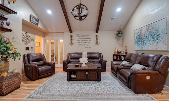 Welcome to your serene escape that promises comfort and tranquility at every turn. As you step inside, the cozy ambiance, invites you to unwind and create lasting memories. A peaceful retreat, with luxurious bedding and ample space to unwind. Whether you choose the master suite with its king-size bed or one of the cozy guest rooms, restful sleep is assured, ensuring you wake up ready to embrace the day. This home is more than just a place to stay – it's a sanctuary for the soul.