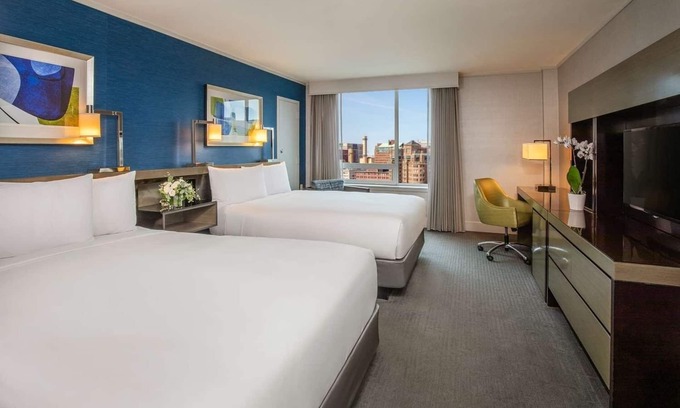Step into our luxurious retreat and soak in the comfort and style. Enjoy a dip in our indoor pool under a breathtaking glass atrium roof. Keep up with your routine in our top-notch fitness center, or treat your taste buds at our on-site restaurant. Perfect for your Cambridge explorations or college visits, this we’ll be your cozy home base. From your spacious room or suite, marvel at the iconic Charles River and Boston skyline views.