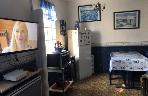 Good size dining area/ lounge with fireplace and TV with more than 200 Channels to chose from. Tiles throughout.
