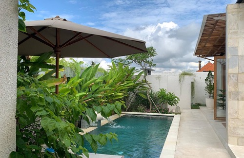 This villa is entirely private, just for you. At 200 sqm, it features a bedroom with an ensuite, a living room, a kitchen, a dedicated workspace (with WiFi up to150mbps), a private pool, and a rooftop with a rice field view. This airy and sunny place provides a quiet and peaceful atmosphere.