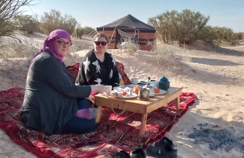 From Douz, You switch in Jeep, We drive to Sahara (25km) there you will discover your Private Camp. A private tent : beds - Sleeping bags - blankets . Dinner prepared on the campfire , nomad music and menthol tea.