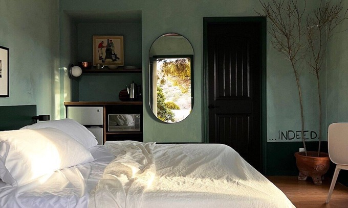 The entire Halliday House property consists of a total of 5 king beds across three separate units that are interconnected by pea gravel pathways through and around the land. The Sunshine House (3 Beds), The Garden Room (1 Bed), and The Dragonfly Cottage (1 Bed). They were lovingly refreshed and are being finished through an artistic and natural process of refining as the needs of the family change. Halliday House is a family home that reflects a collection of stories, artistic endeavors, and scavenged local materials and furnishings. They are cute, cozy, well appointed, and pretty unique. All feature a bathroom, shower/tub, and large plush king size beds with 100% cotton bedding, individual AC Mini Split Units, filtered drinking weather, and fast wifi. All Cleaning Fees are paid entirely to our Housekeeping team!