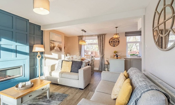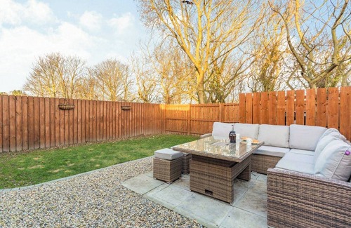 Slip off your shoes and enter the living room, this restful room with a modern wall mounted fire and plush sofas. The living area is open plan with the kitchen and dining room making this room bright, airy, and cheerful. The designated chef will delight in this high-end kitchen offering all appliances to cook up a hearty meal for the whole family to enjoy around the sociable dining table. Finish your evening outside with a bottle of wine and take advantage of the fabulous garden equipped with garden furniture, and a fire pit for them more chilly evenings. The garden is also a great area for your furry friends to have some fun and let off some steam! After an enjoyable evening, retire to one of the three bedrooms, all offering luxury and quality with robes waiting for each guest. All bedrooms have TV’s and are well designed spacious rooms. Refresh in one of two bathrooms, a ground floor shower room or the upstairs bathroom.