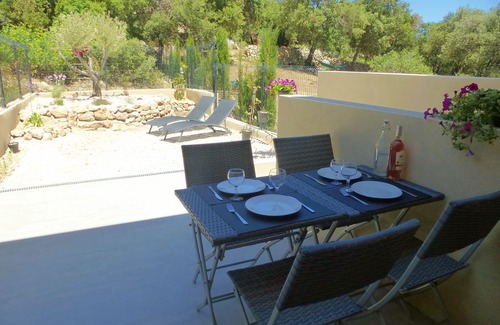 Gite with beautiful views of the Cathar country of Peyrepertuse and Quéribus, away from a village typical of the Corbières in a recent pavilion. The gite is attached to a dwelling house, with terraces and adjoining garden. Small lake with waterfall and swimming at 3 km. Marked hiking trails with the GR36 and the Sentier Cathare near the village. To see the village of Cucugnan at 5km and the gorges of Galamus 18km. Hostels and small shops at 500m. The must-see sites of Carcassonne and Collioure are 1h30 from the cottage.