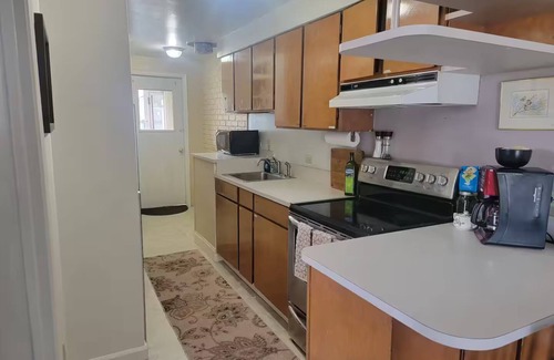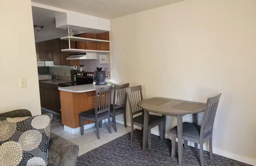 Your duplex is a cozy one bedroom outfitted with a new Tuft & Needle queen bed, (we know you'll love it!) soft cozy sheets, flannels in the winter. Your kitchen is a full kitchen, NO dishwasher, and provides all you'll need to make a delicious home cooked meal. You are welcome to anything in cabinets, fridge, or freezer. Fresh coffee beans are provided. The living room is comfortable, with a table for meals or games. A 42" TV is included with a Roku and Netflix Subscription.