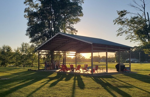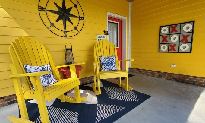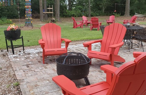 A uniquely eccentric vacation getaway for families & friends. This space was created to bless & entertain generations with no screens & lots of fun! There is an outdoor oasis, playground, zipline, massage chair, hammock, obie projector game & so many other special attributes. Located intentionally in the middle of nowhere...Where Ahh is all you think when you arrive!