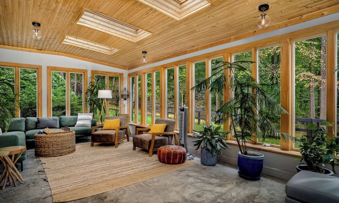 Relax in this serene setting with a hot tub overlooking Harpers Ferry National Park Land. Enjoy evening fires, the pool, screened-in porch, a book in the solarium or go hiking/tubing nearby. We hope our home (Harpers Getaway) provides a tranquil backdrop to immerse you in nature and lower your stress level so you can reconnect with those you love! It is located only 1 mile from the C&O towpath & Potomac River, 2 miles (by foot) from historic Harpers Ferry w/ breweries, wineries galore nearby.