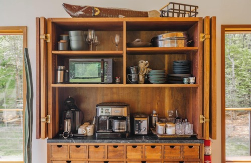 A Retreat @ Hudson Woods is a luxury oasis nestled in the private woods of Kerhonkson. Nearby breweries, farms, and fine dining restaurants make Kerhonkson a true destination, but the privacy and relaxing nature of A Retreat has a peaceful draw. Featured in Architectural Digest for its exceptional design: https://www.architecturaldigest.com/story/inside-a-creative-couples-sustainable-catskills-getaway
