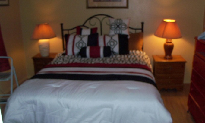 The home is a small unit , gas forced air . It is warm in Winter . New A/C for the SUMMER . Complete with washer / dryer , full bath with tub and shower , a great bedroom , Queen sized bed , a living room with a fold out futon in living room . I have been told the futon is very comfortable . Complete kitchen ware , micro wave COMPLETE KITCHEN , too . What I lack in home , please ASK .