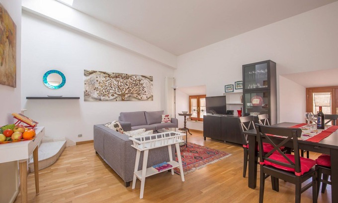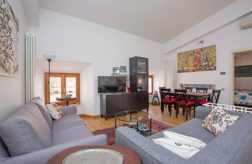 Inserted on the last floor of a well-known historic building, equipped with a lift, the apartment opens up into a completely renovated, bright and elegant environment, furnished with care and with all modern solutions.