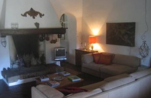 The main level of the house (the lower one being the private holiday home of the owners, a couple of architects working in Florence) is composed by a large sitting room with a huge traditional fireplace and a big sofa, a dining room provided with a big table suitable for eight to ten persons, two double bedrooms, each with Its Own private bathroom, a studio with two single beds, a separate kitchen with store-room, a loggia and, of course, a big garden dressed with the typical trees , plants, herbs and flowers of the region.