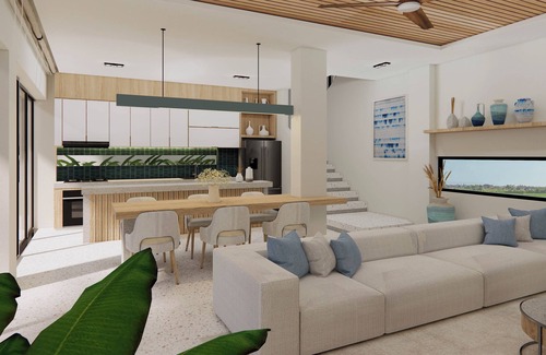 Living Area: Sink into oversized linen sofas, with handwoven throws and curated coffee table books reflecting local art, history, and design.