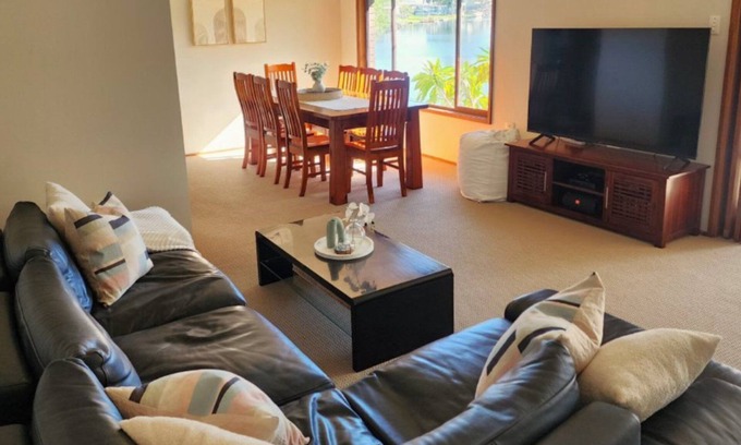 Nestled along the serene estuary, this holiday house offers the perfect blend of comfort and luxury for your getaway.