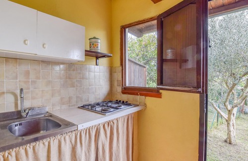 Here we are talking about a very sunny vacation home with a mix of rustic and antique furnishings. In the spacious living room you will find exposed beams on the ceiling and a tiled floor, while the atmosphere is cozy and welcoming. Here you will be motivated to cozy up with your loved ones and delve into your vacation reading. You can reach one of the bathrooms through a bedroom. The house is surrounded by a large and well-kept garden, equipped with table, chairs and barbecue for outdoor meals.